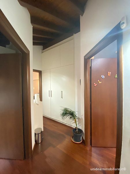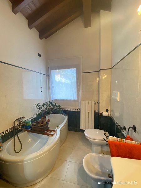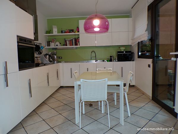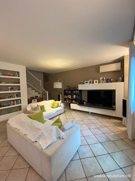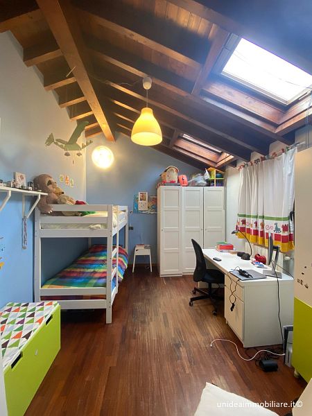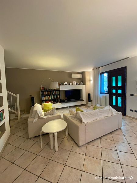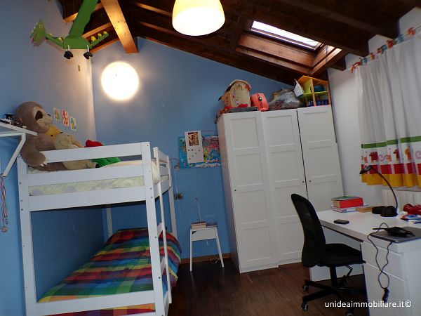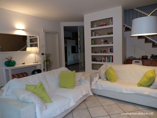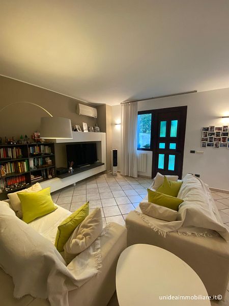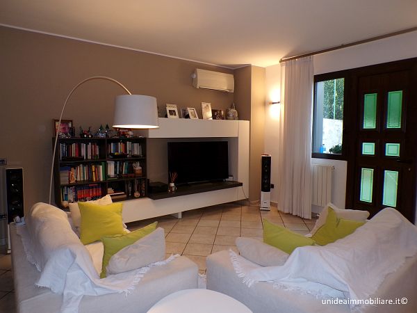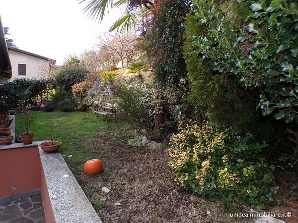 In posizione centrale, porzione di villetta con giardino ed ingresso pedonale indipendente, composta da ampio soggiorno, cucina abitabile con accesso diretto alla parte esterna, bagno con doccia al piano terra; 2 camere e bagno con vasca idromassaggio al primo piano, il tutto con travi a vista; locale lavanderia, locale taverna e box al piano interrato. Le finiture sono ottime, gli infissi sono in legno con doppio vetro, la porta è blindata, climatizzatore sia nella zona giorno che nella zona notte, impianto antifurto. Metratura complessiva di circa 210 mq oltre a circa 220 mq di giardino. Il riscaldamento è autonomo a metano. TELEFONARE 0331/964.475